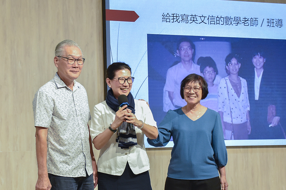 Ms Cheah further shared how replicating such experiences made her realise that love can be passed on from educators to students. At this point in the sharing, she invited her mathematics teacher on stage to introduce himself to the audience. As she led her mathematics teacher and form teacher on stage, thunderous applause came from the audience. This is the embodiment of how education can have long-lasting impacts, passing love from educators to students.