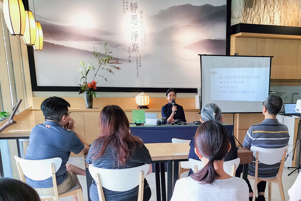 静思茶道体验课,茶道老师们用心营造茶境,同学透过茶事学习而丰富生命,接受艺术陶冶而美化心灵,时常演练茶礼而提升内涵。让学员们在品茶的当儿,可以静心、清心、净心。