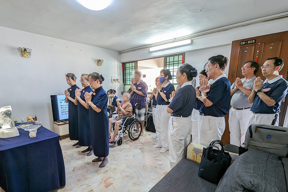 道别时,谢妈妈满面笑容对志工说:“感恩你们来祝福我,我也要祝福大家事事平安、身体健康。”