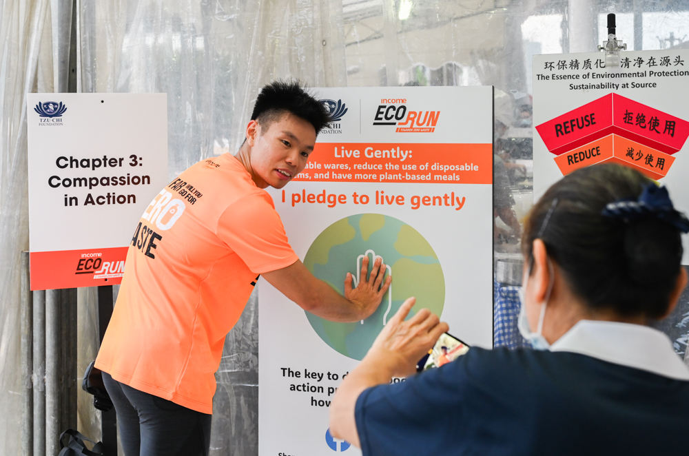 2024年5月26日,英康环保竞跑(Income Eco Run)在滨海提坝举办,超过五千人参与。慈济志工第五度受邀成为合作伙伴,不只是回收马拉松所消耗的资源,更在终点站设立环保村 ,让现场参与者了解环保。