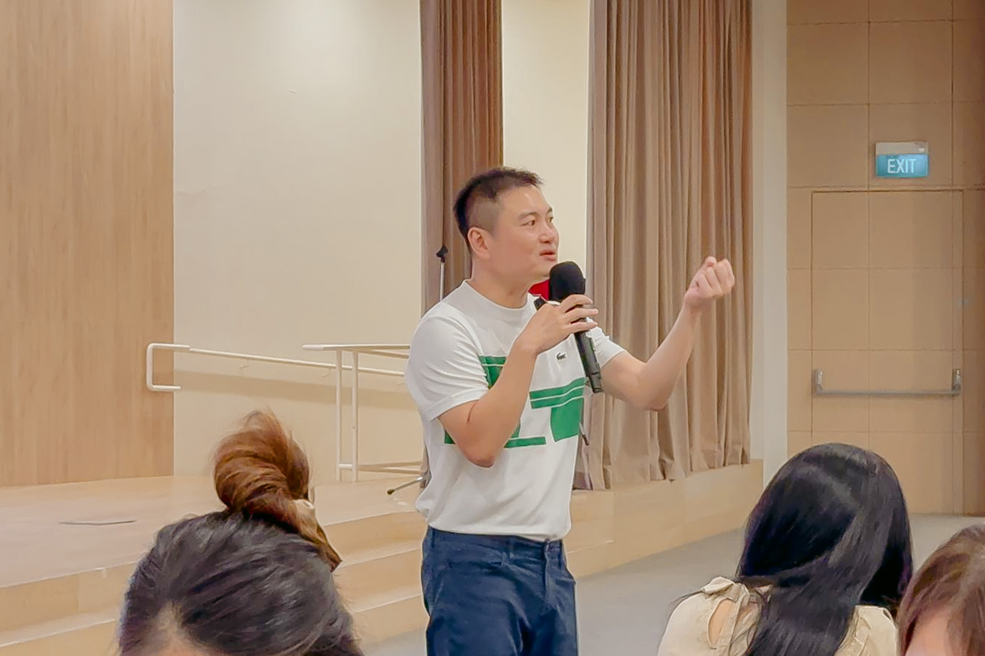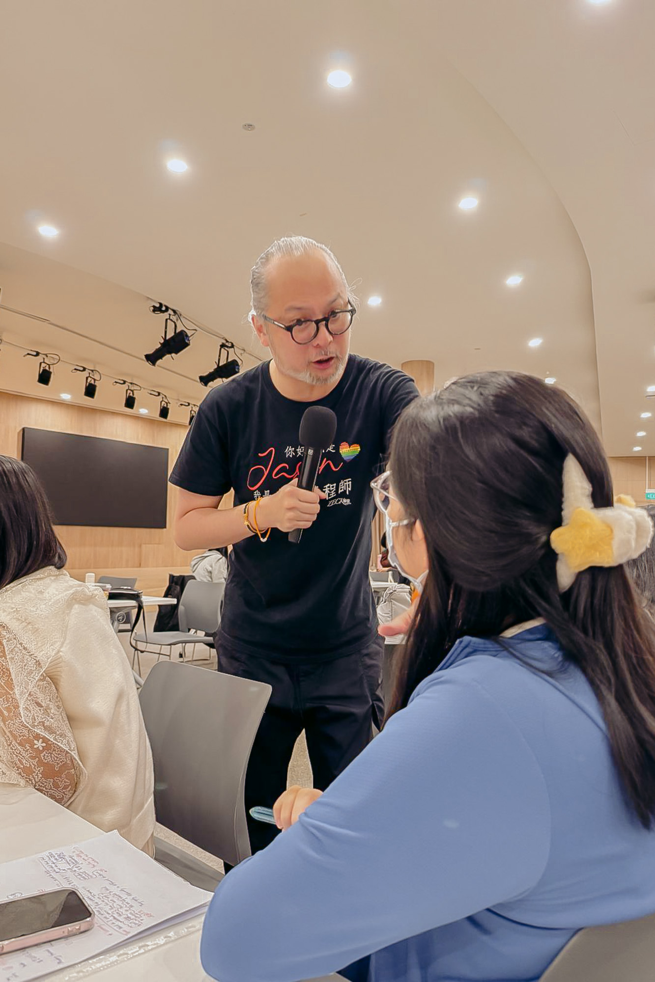 泽从宽透过生动有趣的方式与老师互动,透过一句句提问,引领老师们找回加入幼教行业的初心。摄/ 欧凤仪